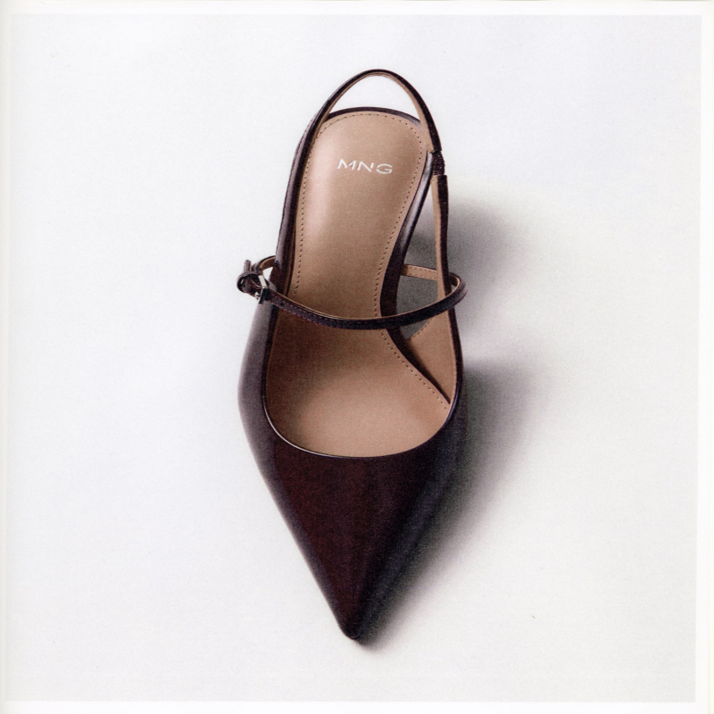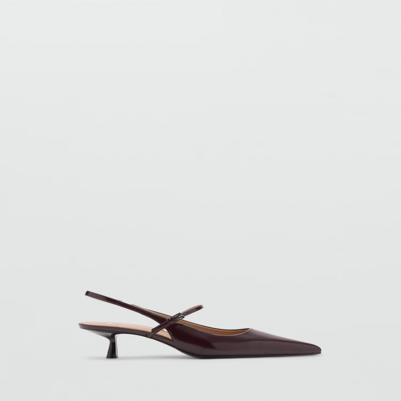 Efecto charol. Diseño destalonado. Diseño de tira. Hebilla ajustable. Con punta. Tacón kitten. Sin cierre. Forro interior. El tacón mide 5,5 cm.