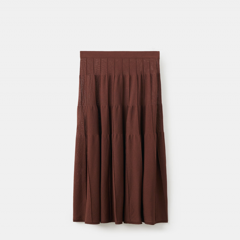 Tejido de punto fino. Diseño largo. Diseño evasé. Detalle costuras. Tiro medio. Cintura con goma elástica. Sin cierre. Total look.