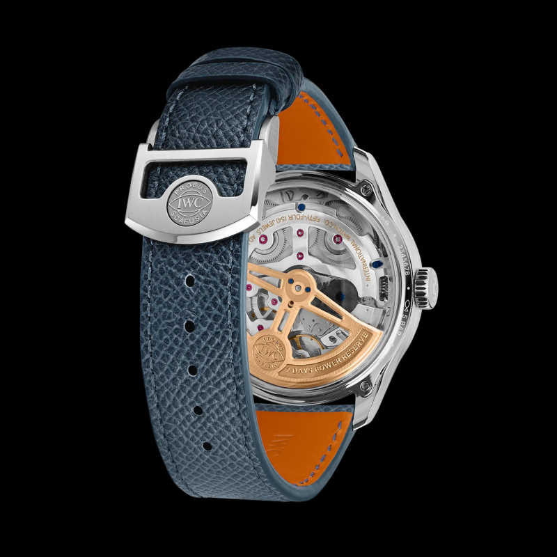 Color de la esfera: Azul horizonteCaja: Oro blanco de 18 quilatesCorrea: Correa de piel de becerro azul claro de SantoniDiámetro: 44,4 mmMovimiento: Automático, de cuerda automática, movimiento de fabricación IWC